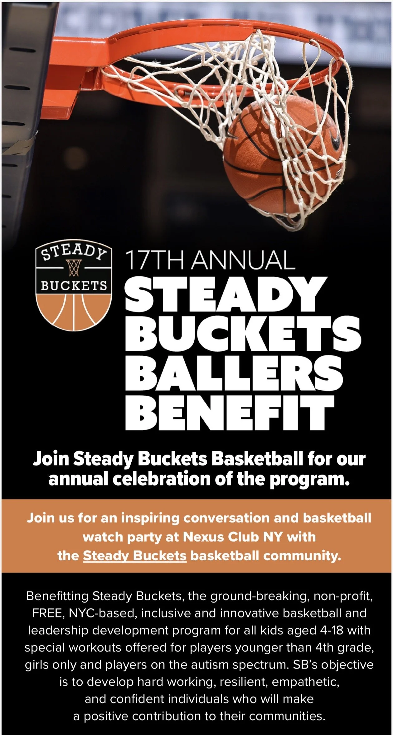 CLICK ABOVE TO DONATE AND HELP KEEP STEADY BUCKETS FREE AND OPEN FOR ALL OF NYC’S YOUTH BASKETBALL PLAYERS